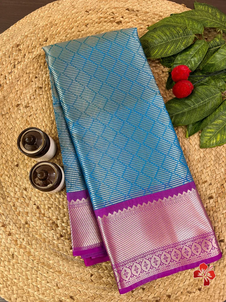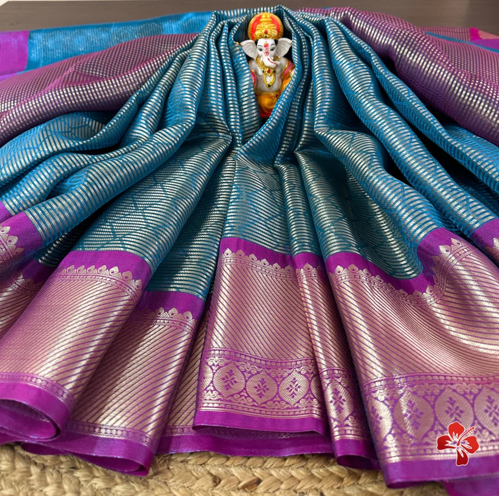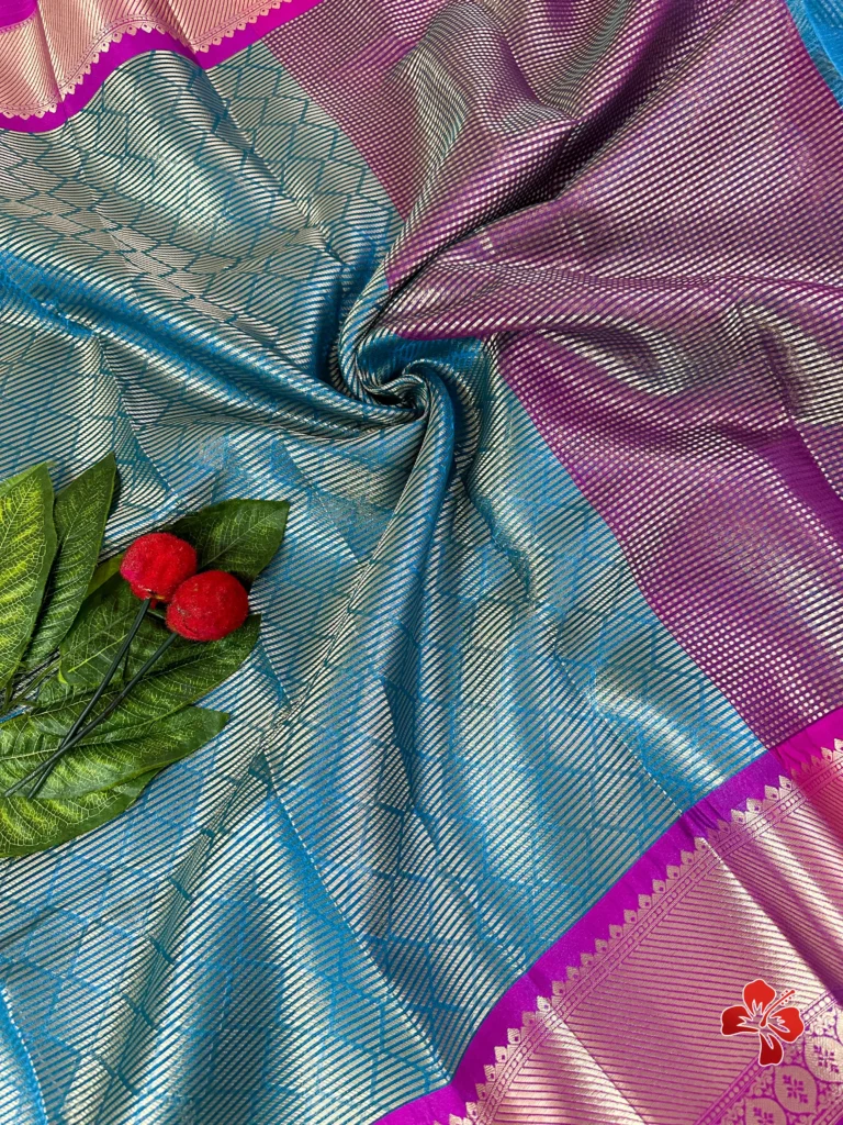 Classy Colour Combo, the Banarasi Soft and Rich Silk Tissue sarees with all over Zari weaving in the body and Kanji Style Contrast Woven Border and Woven Pallu