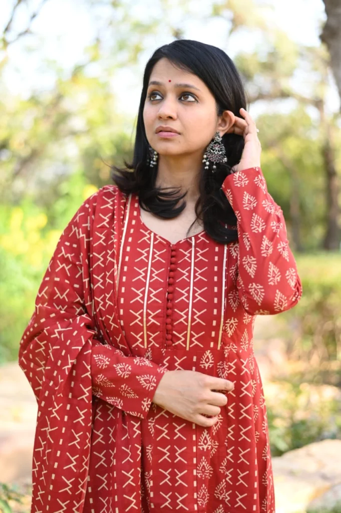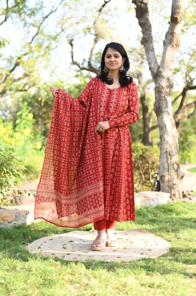 Kurta – Cotton Kurta with Gota Detailing, Double Print Anarkali
