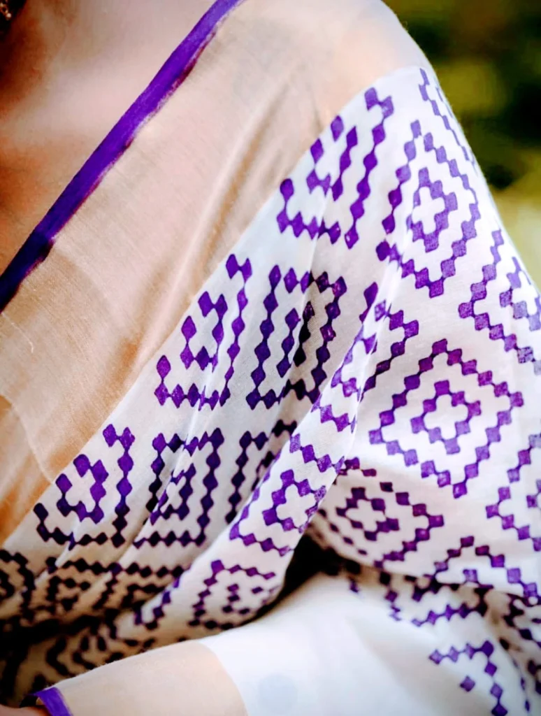 Purple Handblock Printed Kerala Handloom Soft Saree